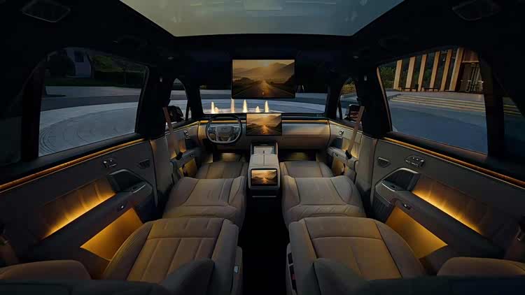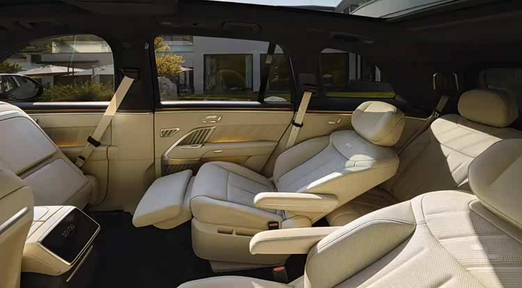 ·二排支持双小桌板设计,拥有侧窗隐私手动遮阳帘、21寸LCD吸顶屏;