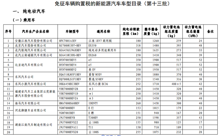 10月底,工信部又公布一波《免征车辆购置税的新能源汽车车型目录》。这次的目录里新能源乘用车一共有46款,纯电动乘用车有45款,插电式混合动力乘用车有1款。