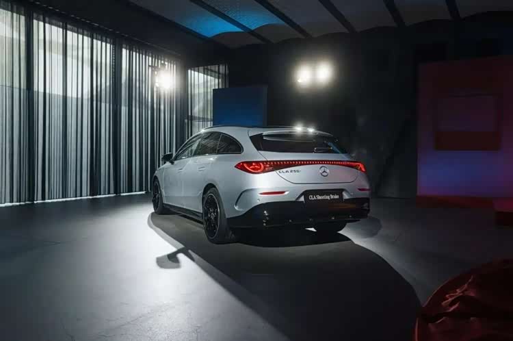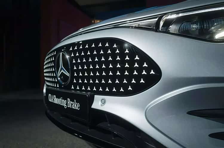 该车的车身B柱之前与全新CLA轿车保持一致,采用低风阻座舱、鲨鱼鼻设计,前脸配备142颗独立发光的镀铬效果LED星标,可选装MULTIBEAM LED大灯及光带。