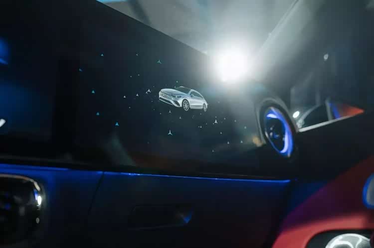 内饰延续新款CLA设计,配备悬浮式中控台、车门饰板及MBUX Superscreen系统,可选3块屏幕(10.25英寸仪表+14英寸中控+14英寸副驾屏),由Unity游戏引擎驱动,支持云游戏及视频流媒体。方向盘回归滚轮及摇杆控制,电容面板集成触觉反馈。