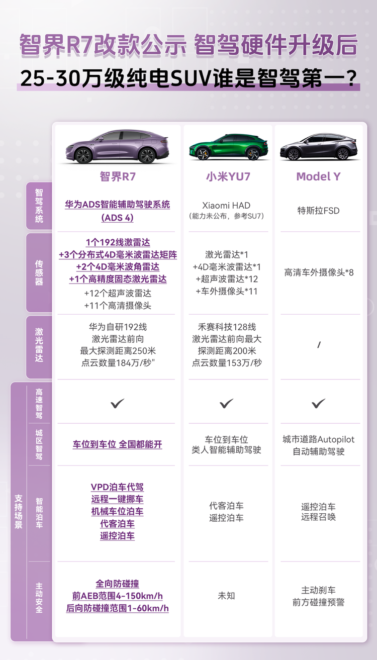 硬件升级只是基础,软件算法的迭代才是智驾体验质变的关键。改款智界R7预计将搭载华为ADS 4。