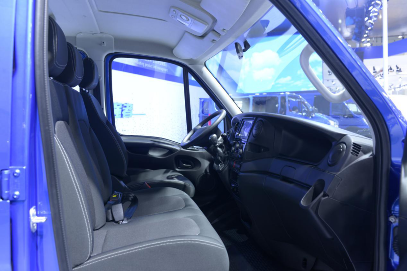 再加上全新一代 Daily C45-33的驾驶室采用前排三座椅的设计,中间腾出的空间使得三个人坐在驾驶室里面完全不会有任何障碍。内饰给人的第一感觉就十分舒适,温柔的设计线条和功能齐全的操作使得Daily的舒适程度更偏向于轿车。