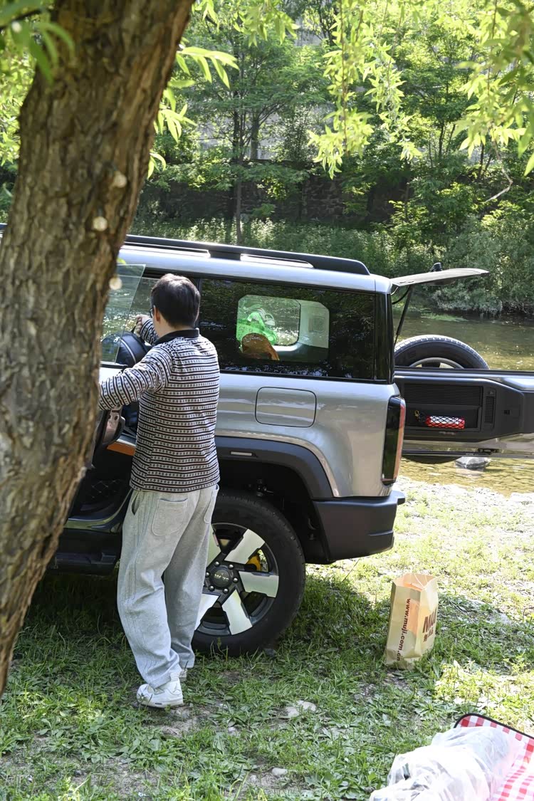 从“车顶星空”到“移动派对空间”,BJ40增程用场景化设计重新定义露营体验。车顶行李架可扩展出超大的储物空间,轻松装下露营所需的各种装备与美食;车载外放电功能支持电烤盘、电火锅、电唱机等设备,让露营餐食从“简单果腹”变为“美食狂欢”,让露营氛围从“安静沉默”变为“热闹欢歌”。