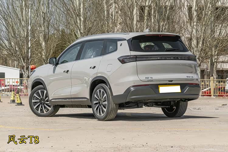 从奇瑞风云T8的设计中,我们可以观察到它是基于燃油版瑞虎7 PLUS而构建的。这款车采用了隐蔽的门把手设计,尾部的视觉中心相对较高。而风云T8L则更像是一个全新的车型,从车顶到后部都展现出了一种下滑的设计风格,给人一种时尚的感觉。它还配备了半隐藏的门把手和多辐的双色轮毂,尾灯的内部结构设计精美,上方有英文标志,并配有后雨刷。尾部设计厚实且饱满,而下半部分则采用了类似宽体的设计和带有扩散器的后包围,增强了车辆的运动感。