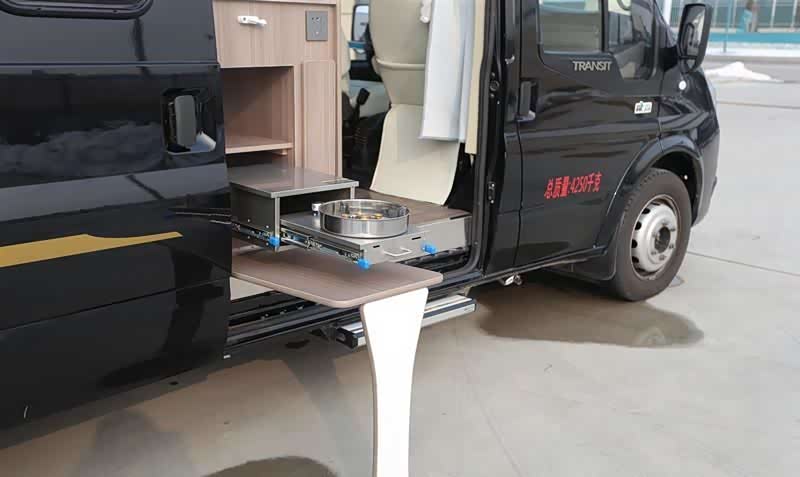 上车门部位集成有户外厨房设施,包括抽拉式七星猛火燃气灶、储物柜、220V五孔插座、调味品收纳盒,中门还可以选装网纱门。搭载2.2T高压共轨柴油发动机,与之配套的传动系统标配6mt手动挡变速器,可选装6amt手自一体变速器,也有朋友称amt为自动挡,但是与真正的at自动挡相比,其平顺性还是有一定差距的。最大功率140匹马力,峰值扭矩355牛米,发动机提供终身质保。