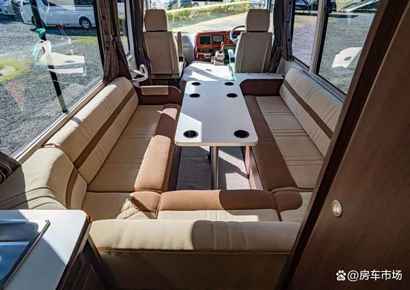 这台由三菱罗莎Fuso Rosa中巴客车改装的房车,3.0T柴油发动机动力充沛,内部空间宽敞,双会客区的设计让该车具有更多的功能,乘坐10人休息7人,比一般丰田考斯特的会客区还大,这种车型布局更适合多口家庭或者企业。国外售价约合人民币80万元。