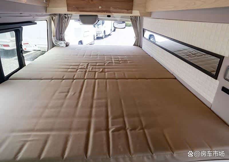 后部是一张大床,由三块垫子拼接而成,尺寸为1400*1900mm,睡下两人很轻松。
