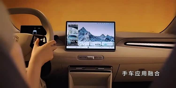 车辆内部发生了彻底的改造,焕然一新。双色中央控制台采用了简洁的设计,配备了悬浮的中控大屏和矩形的全液晶仪表盘,共同形成了一个主要的视觉区域。其最显著的特点是配备了OPPO智行车机系统,该系统能够实现手机语音备车功能(也就是可以直接说“去公司”自动开启空调)、手机上车后可以瞬间完成无缝切换(自动播放歌曲)、全量APP在车机上的使用(可以刷剧听歌零延时)、手机操作可以直接映射车机、手机摇一摇可以开启导航、AI深度融合场景(提示“燃油不足”自动导航加油站)等六大功能。
