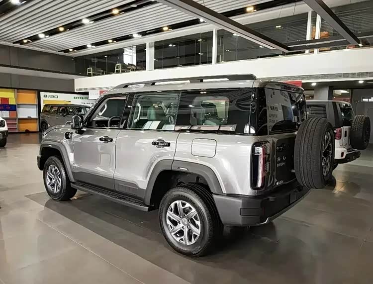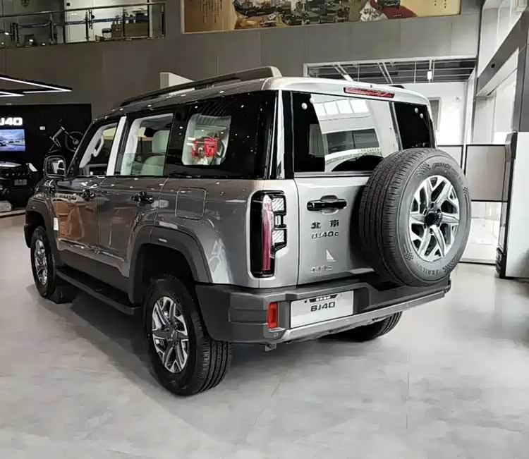 2026款BJ40燃油版在车尾部分延续了硬派越野车的经典设计元素。其标志性的全尺寸外挂式备胎展现了越野的粗旷风格;侧面的掀门设计既方便又实用,而粗大的后保杠进一步增强了车尾的保护和力量。