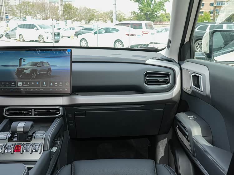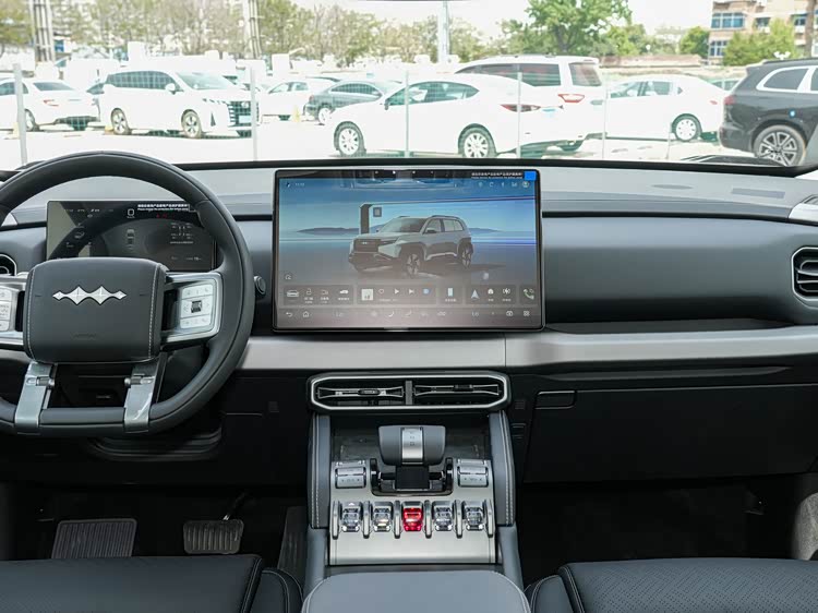 进入车内,钛3延续家族化座舱布局,整体风格与豹5保持高度一致。中控区域配备一块嵌入式全液晶仪表盘,搭配悬浮式中控显示屏,信息整合与驾驶功能控制实现集中化。方向盘为四辐造型,并保留大量物理按键,这在强调驾驶操作可靠性的越野车型中更为常见。