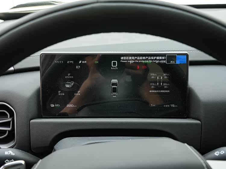 钛3采用前后双电机配置,前轴搭载一台额定功率为110kW的交流异步电机,后轴匹配200kW的永磁同步电机,组成电动四驱系统。整套系统的输出调校更偏向响应速度与扭矩释放,在城市路况与户外非铺装路面均具备一定的通过能力。