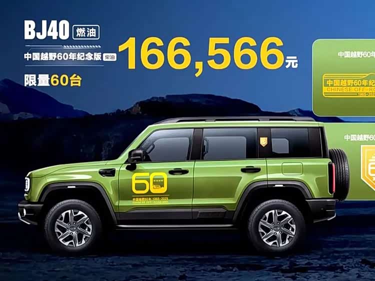 7月19日, 北京越野BJ40(参数|询价)燃油正式上市。共推出3款车型,售价14.99-15.99万,焕新价12.69-13.69万元。此外,BJ40燃油越野60年特别版,官方指导价16.6566万元限量60台,BJ40燃油摇滚40年纪念版,官方指导价16.6566万元限量40台。