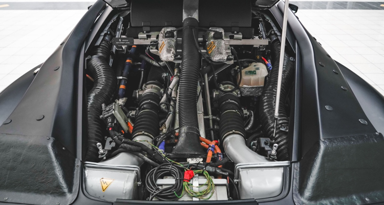 外观方面则完全不同,只有大灯、尾灯、后视镜和侧面的盾徽逃过了工程师的“大改造”。车头那巨大的进气格栅、车顶上夸张的进气口,以及车尾从底盘延伸出约一英尺长的超大排气管,无不彰显这辆试验车的独特身份。