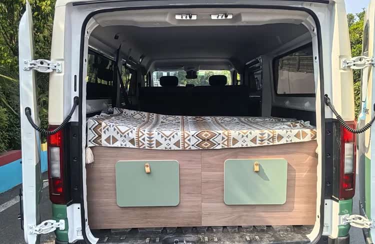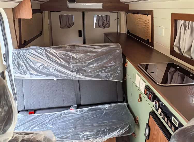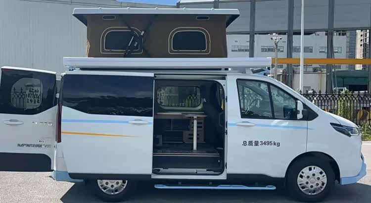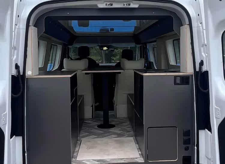 车身尺寸方面,这款车的长宽高分别为5085*2095*2200毫米,基本上和福特全顺相当,不过2.2米的车身高度,几乎告别了小区地库,但通过日常限高杆还是比较轻松的。为了增加车内空间,车顶部还提供了一部电动升降顶,打开以后内部可以提供一张双人床。