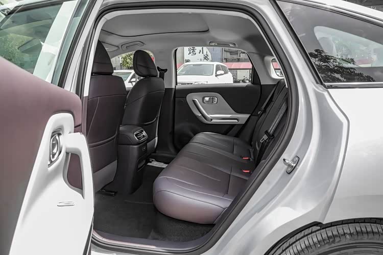 AION RT的车身长宽高分别为4865x1875x1520mm,轴距为2775mm,虽然车身长度和轴距数据都要比零跑B01出色一些,但是实际的乘坐空间相差不大,同样以身高175cm的成年人为例,腿部空间还有接近3拳的富余,整车座椅同样采用的是仿皮的材质,主副驾驶位均支持电动调节功能,并带有座椅加热和通风功能,对于副驾驶位的关怀度十分友好。行李舱的日常容积为540L,后排座椅支持按比例放倒功能,放倒后最大载物空间要比零跑B01大一些。