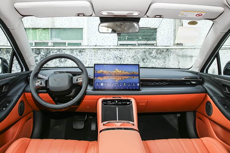 AION RT的内饰采用的是环抱式的设计布局,并运用了上下分层式的设计,橙色的内饰配色增添了一些时尚氛围感,中控台以及车门处采用了大量的皮质包覆,使其手能够触摸到的地方十分细腻,方向盘采用的是两幅式的圆形造型,支持上下前后四向调节功能,换挡形式为电子式怀挡,8.88英寸的全液晶仪表盘分辨率较高,可查看行车信息十分丰富,中控台则搭载的是一块带有ADiGO车载智能系统的14.6英寸液晶屏幕,智能化表现基本上和零跑B01处在同一水平,对于日常驾驶能够起到一定的便利性。而这台车在高科技配置层面则没有零跑B01那么丰富,整车搭载了4颗车外摄像头以及3颗超声波雷达,仅支持360°全景影像以及定速巡航等功能,在智驾层面以及主动安全功能方面还有待提升。