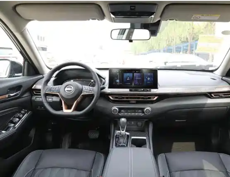 坐进车内,天籁的内饰布局延续了 “实用主义” 风格:7 英寸液晶仪表 + 12.3 英寸悬浮中控屏的组合不算惊艳,但显示清晰、操作流畅;机械式换挡机构和实体空调按键的保留,让老一辈用户无需学习成本就能上手。