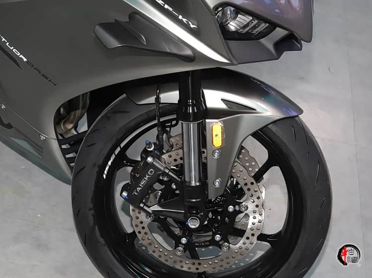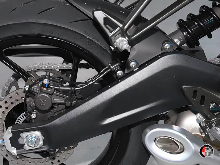 硬件方面,悬架系统坚持厂队技术调校,前悬架采用KYB 41mm全可调倒置前叉(阻尼/预载精细调节),后悬架采用KYB外置气囊中置减震(高速稳定性强化)。刹车系统采用前后盘刹,前300mm双盘+对向四活塞卡钳,后220mm单盘+单活塞卡钳,标配可关闭的弯道ABS制动系统+多级TCS牵引力控制系统+倾倒熄火,实现三重安全防护。
