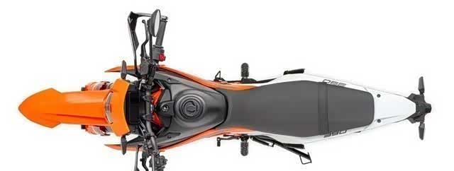 125 Enduro R和390 Enduro R的外观设计与SMC R版本一致,动力方面,390 Enduro R搭载与390 Duke和SMC R同平台的单缸水冷发动机,大功率33.46kW,大马力44.6匹,大扭力39 N·m,可选配Quickshifter+快排,操控更灵敏。车架设定与690 Enduro R相同,并配备了可调高度的手把和一体式座椅设计,腿部活动空间更大。前后减震行程均为230mm,制动系统则配备了Bosch 10.3MB双向ABS系统,并可以单独关闭后轮ABS的越野模式。