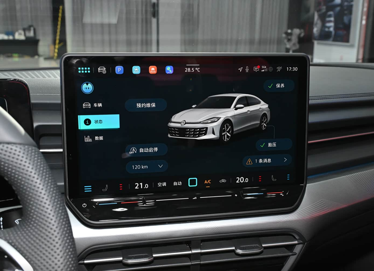 再者就是这款车内饰上的升级,对于老款车型的印象,我觉得它就非常的漂亮,因为当时这款车的刚上市的时候,国内市场正在流行那种贯穿式的大屏。而现在国人喜欢的方向慢慢的倾向于那种悬浮式的显示屏配上液晶仪表的搭配。所以新款车型也是用上了大众最新的外观设计语言,10.25英寸全液晶仪表+12.9英寸中控屏真的很大气,除此之外,这款车还有8155座舱芯片,配备AI语音助手,文心大语言模型,融合DeepSeek深度思考能力,科大讯飞语音系统,支持CarPlay/CarLife/HUAWEI HiCar互联。新车还提供车道居中、ACC高级自适应巡航、IPA泊车辅助、RPA远程泊车辅助等等,软硬件配置的提升可以说非常明显。