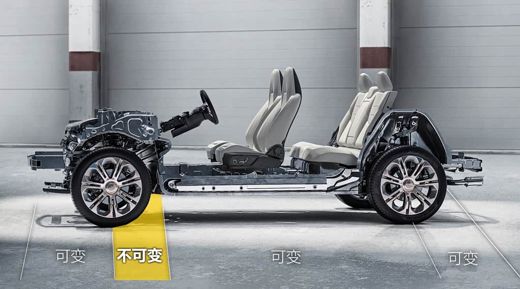 而这款历时4年开发的模块化平台除了前置前驱这个属性不可变之外,轴距、前后悬架、前后弦长度都是可变的,未来还能根据车型的需求进行调整。