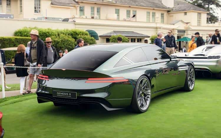 捷尼赛思X Speedium Coupe概念车承袭品牌“动感的优雅”设计理念,并在形式上更为前卫。虽属GT车型,但设计语言已暗示品牌未来对于高性能车辆的追求。车身自前部贯穿至尾部的“浩漾之雅车身流线”营造出张力十足的轮廓,而精巧的“反楔形流线”设计带来更流畅、内敛的造型,散发低调优雅的气质。其车身配色“仁济绿”,灵感源自韩国同名赛道所在地的山地景观。
