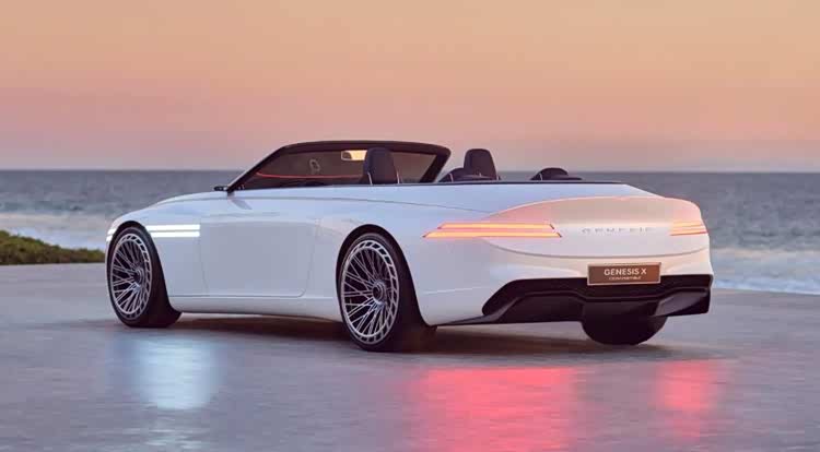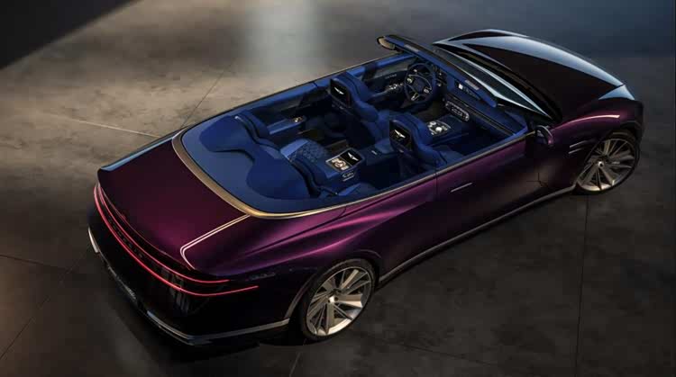 基于捷尼赛思G90打造而来的另一款车,捷尼赛思X Gran Convertible概念车强调“自由表达”与“沉浸式敞篷体验”的理念,使驾驶者能与自然环境实现直接连接。车身腰线进一步向后延展,与软顶敞篷结构形成鲜明分界。动感的五辐式星芒轮毂,轮辐融入立体感设计,形成独特的双线辐条对比效果。整车外观颜色则以南欧顶级红酒为灵感,外观颜色取自葡萄压榨后的色调。