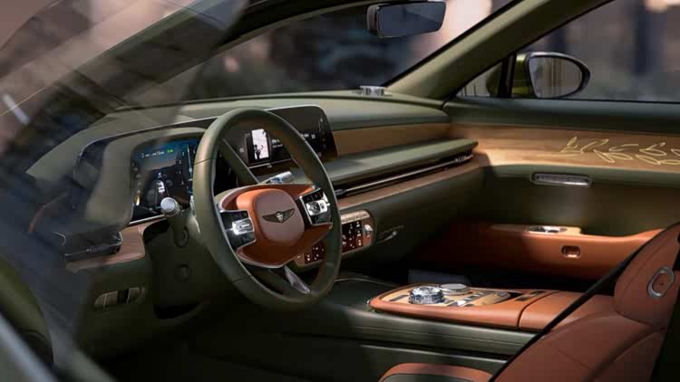 内饰延续“留白之美”设计理念,捷尼赛思X概念车的座舱空间以驾驶者为中心,所有操控系统和显示屏均围绕驾驶者而设计。座舱内饰分别采用苏格兰棕与海湾蓝配色,进一步凸显了概念车的独特设计。整体座舱采用可回收材料制成,捷尼赛思以实际行动推动未来出行可持续发展的愿景。标志性的双线设计也延伸至纤细、间接的环绕式空调出风口及侧窗饰条,与外观设计相得益彰。