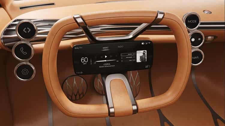 座舱方面,捷尼赛思 Mint(参数|询价)概念车是品牌首次完整呈现“留白之美”设计理念的作品之一。该理念源自韩式美学,强调简约克制,为内舱营造出宁静而宽敞的氛围。座舱借由轻质织物、棕色真皮及无框车窗,呈现如起居室般的空间。此外,可折叠式的中控台可以将悬浮式前排座椅变为舒适的沙发。方向盘中央嵌有小巧的仪表盘,进一步增强了空间感;6个铜制设计的触控屏分布其周围,便于驾驶者直观操作而无需分心。