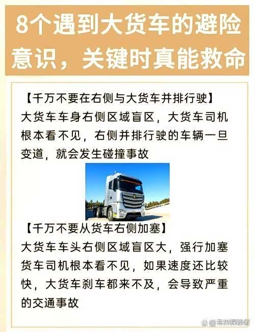 我一个朋友就差点因为这个情况出事。他从右侧车道超车时,左侧那辆刚超完车的货车突然向右变道,根本没注意到他的存在,幸好他反应快,急踩刹车才避免了碰撞。