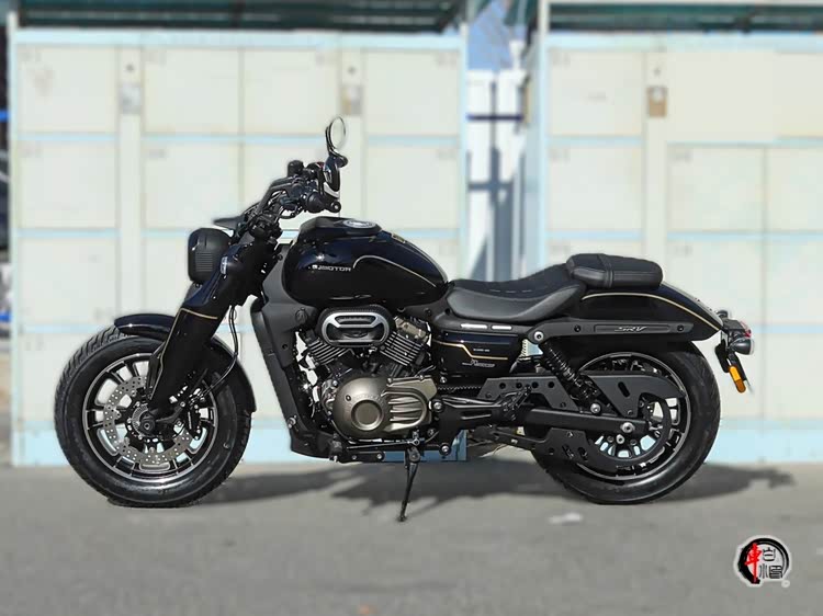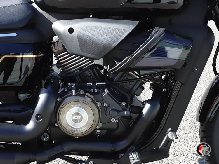 闪400的设计语言在古典巡航与现代运动中找到了平衡点。2220mm修长车身配合1520mm轴距,低趴姿态中暗藏力量感。核心视觉符号集中于前脸:圆形LED矩阵大灯(三颗独立灯珠)嵌入方形透镜灯框,构成“天圆地方”的哲学表达。剑鞘式青铜色前减震护罩与油箱金色闪电拉花,进一步强化机械美学。昼夜黑/熔岩灰/星夜黑三色可选,质感在线。