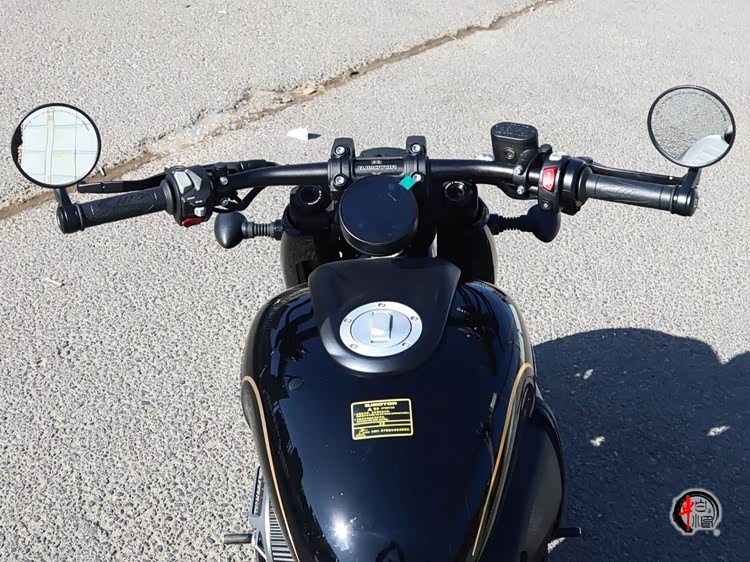 灯光系统是传统与现代的碰撞焦点。圆形LED主灯内嵌三颗矩阵灯珠,方形透镜大幅提升聚光能力,夜间照明穿透性显著增强。子弹头转向灯线条流畅,与整车复古基调无缝融合。车机系统采用圆形LCD彩色液晶屏,经典造型中融入现代功能:时速、转速、油量、水温、档位清晰可辨,并集成T-BOX车联网系统,手机端即可实时掌握车辆状态。