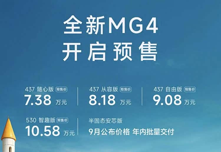 8月5日,上汽名爵旗下的紧凑级两厢纯电动轿车,新一代M4正式开始预售,预售价区间为7.38-10.58万元,相比上一代车型13.98万的起步价,新款的价格进行了大幅的下探。另外值得注意的是,目前续航四百公里以上的小型电动车的售价大部分也都要在8万以上区间了。所以,此次新款名爵 MG4(参数|询价)给出了很卷的定价策略,而这还仅是预售价。