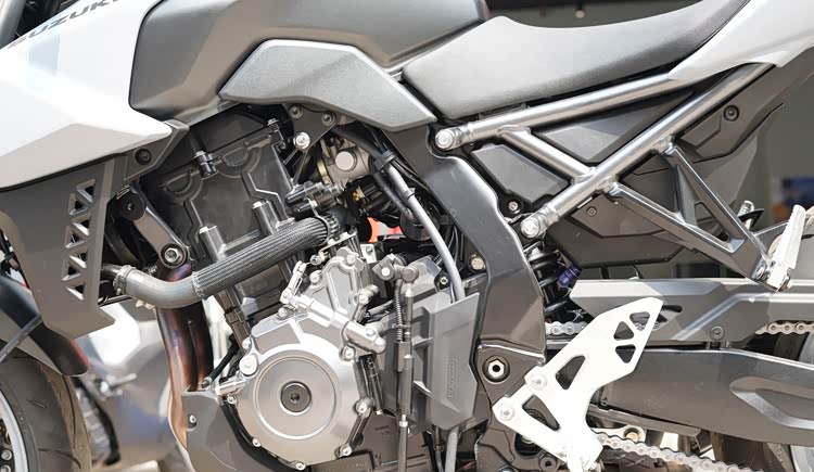 同为街车的铃木GSX-8S所搭载的恰好也是800cc的直列双缸引擎,它随着压缩比的提高,散热形式换成了水冷,其最大功率60KW,最大扭矩76N·m。