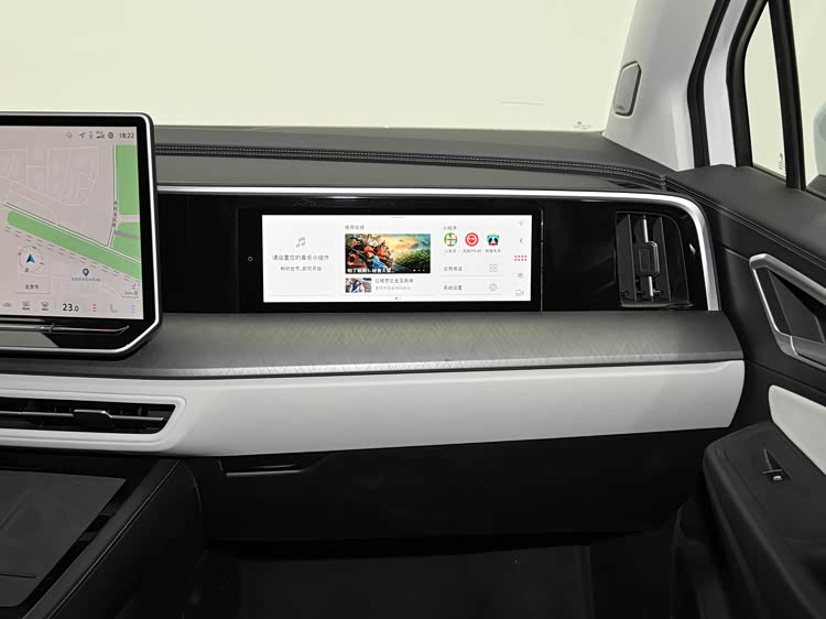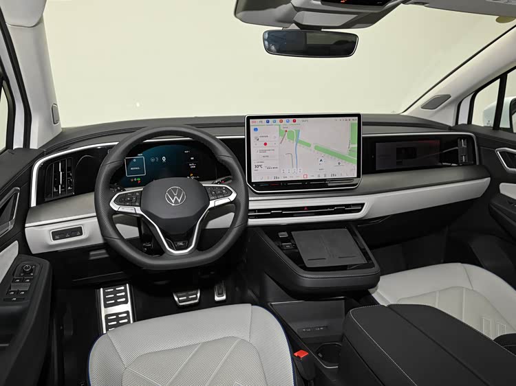 车内布局采用一汽-大众最新座舱架构,取消传统机械挡把,转为怀挡式操作形式。中控区域配备15英寸悬浮式中控屏与11.6英寸副驾屏幕,屏幕均集成高通8155芯片,操作响应时间缩短,系统流畅度提升。