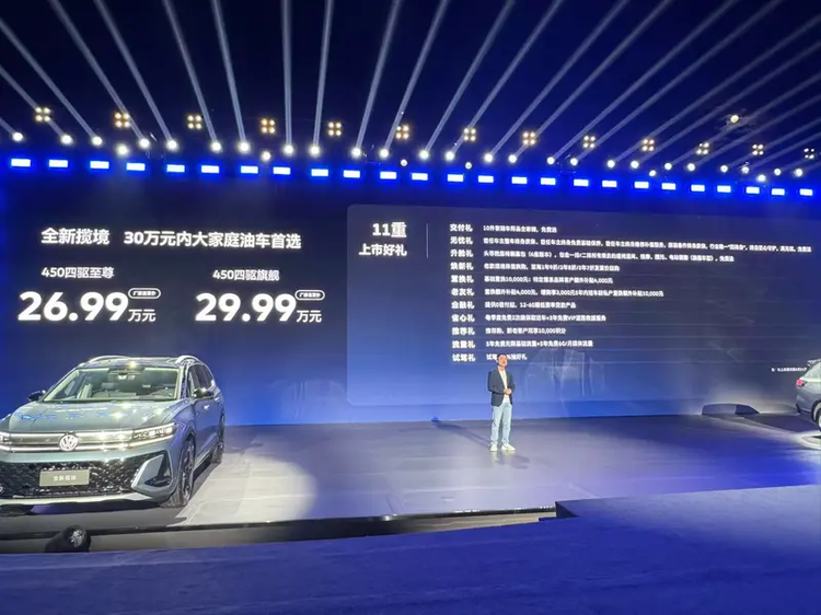 日前,一汽-大众官方宣布,全新 揽境(参数|询价)正式上市。本次改款共推出2款车型,官方指导价格为26.99万元与29.99万元。新车基于MQB平台打造,定位中大型SUV,重点针对空间表现与智能化配置进行了调整,并引入了两种不同外观风格以适应多样化用车需求。