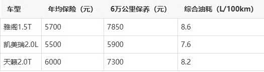 数据表明:雅阁在保养成本与油耗平衡性上优于天籁,但略逊于凯美瑞。