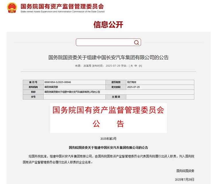 7月29日,经国务院批准,由国务院国资委直接履行出资人职责的汽车央企——中国长安汽车集团有限公司正式成立。至此,中国长安升维,与中国一汽、东风汽车共同组成中国三大汽车央企,同时重庆也迎来了首个一级央企。