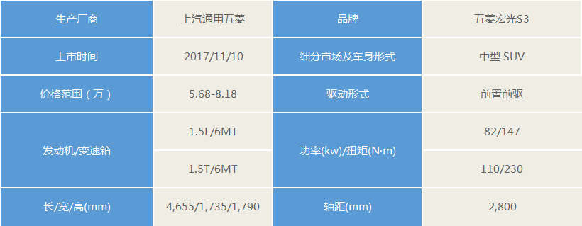 外观方面,宏光S3像是五菱宏光S的进阶版本,但前脸造型更加立体、饱和。内饰上,新车则采用了五菱最新的家族式设计语言,撞色设计和大面积皮革软包让都给了新车不错的触感和视觉感受。中控8英寸悬浮屏充满科技感,只是不知道什么时候五菱也能引入上汽乘用车引以为豪的互联网系统。其他配置方面,新车也颇具人性化设计。不同于其他车企,五菱的SUV产品大都由其MPV车型演化而来,所以在很大程度上,虽说外观不能带给五菱决胜优势,但在人性化设计和空间把握上,五菱SUV却拥有同级竞品无法比拟的考究。