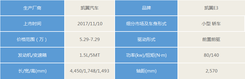 凯翼E3是凯翼旗下第二款轿车产品,其前脸采用了大嘴式前格栅,看起来富有张力,车身侧面线条造型流畅,俯冲式的腰线贯通到尾部,平顺有力。车内,新车拥有皮质座椅、炮筒式仪表和酷黑真皮方向盘等装备增添动感气息。作为奇瑞旗下的较新的汽车品牌,凯翼致力于年轻化车型的打造,但从现有产品来看,凯翼还未能成功找到符合自己的市场定位,车型和品牌也尚未打造出独特的特色,应当说凯翼在发展道路上还有一段路要走。