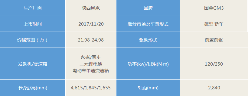 国金汽车是国金汽车集团的新能源品牌,在发布国金品牌两个月后,其旗下首款车型GM3正式上市。不同于其他大部分新能源企业的微型车起步,国金GM3定位于纯电动MPV,新车前脸采用窄条幅进气格栅搭配蓝色镀铬装饰条设计,看起来非常舒展,同时其大灯组采用LED光源。内饰方面,新车采用了典型的对称式布局设计,中控台非常宽大,特点在于A柱位置设有三角窗,所以其视线死角很小。虽说国金汽车刚刚起步,看起来产品线单薄,但在GM3发布的同时,国金还有着完整的轿车、SUV甚至是微型车的设计构想,或许在不久的将来,一家颇具竞争力的新能源企业就将呈现在我们面前。