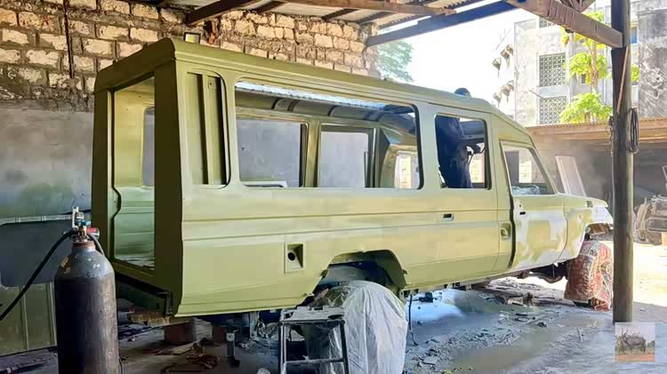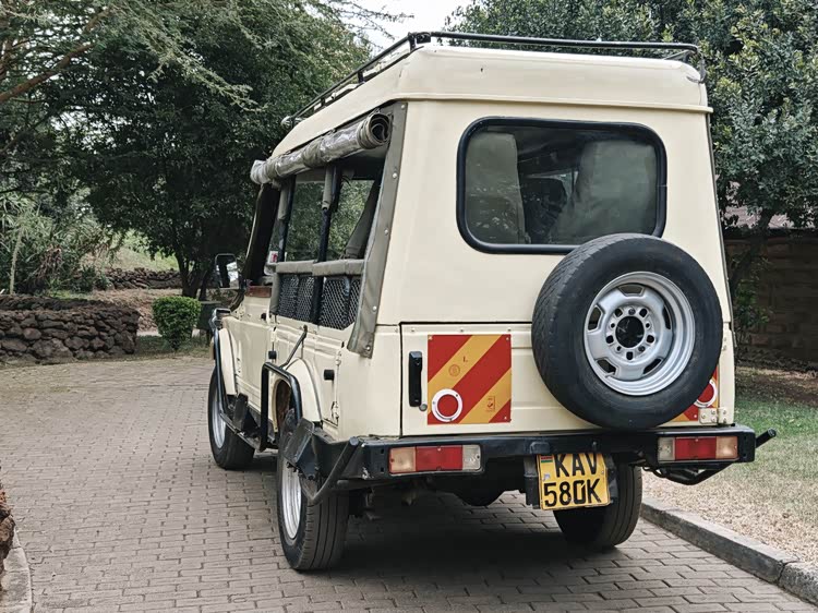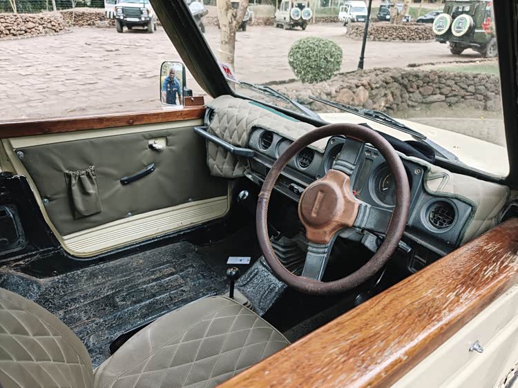 后来去查了一下,应该是80年代的第二代吉姆尼,具体是什么年款就不得而知了,因为肯尼亚手搓了复古改装,把门框都拆掉钉上木头,复古味拉满。