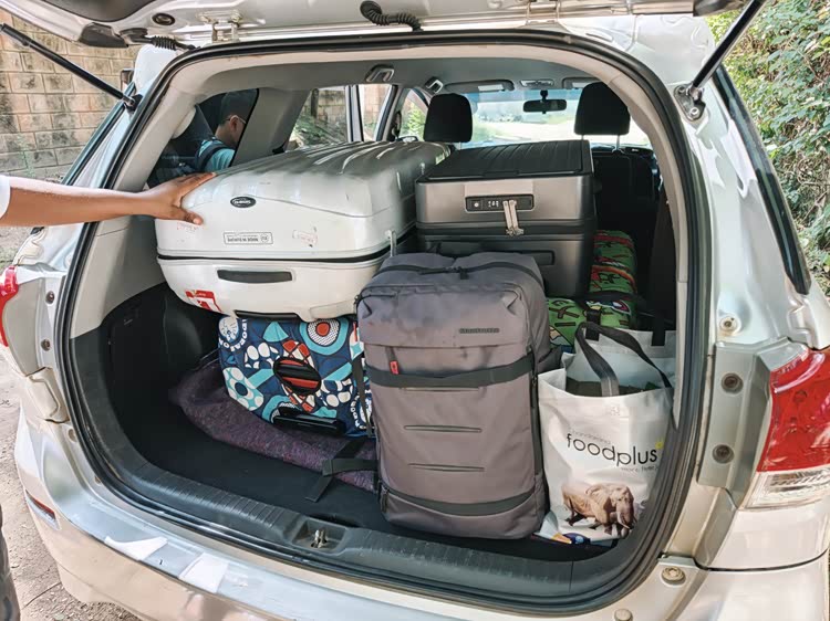 从蒙巴萨火车站打了辆Uber六座车去Diani海滩,结果来了个本田初代Freed。一开始还担心行李放不下,结果第三排放倒后可以放3个26-28英寸箱子,再加一个20英寸登机箱,再加一个摄影背包,还是很能装。
