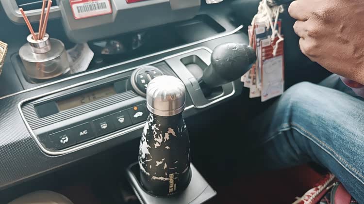 作为A0级MPV车型,本田Freed的换挡杆也设计在前IP台上,旁边有空调组件,中间有一个弹出式杯架。前排座椅中间是掏空的储物区,但是只有主驾侧有扶手,副驾就得委屈一下了。