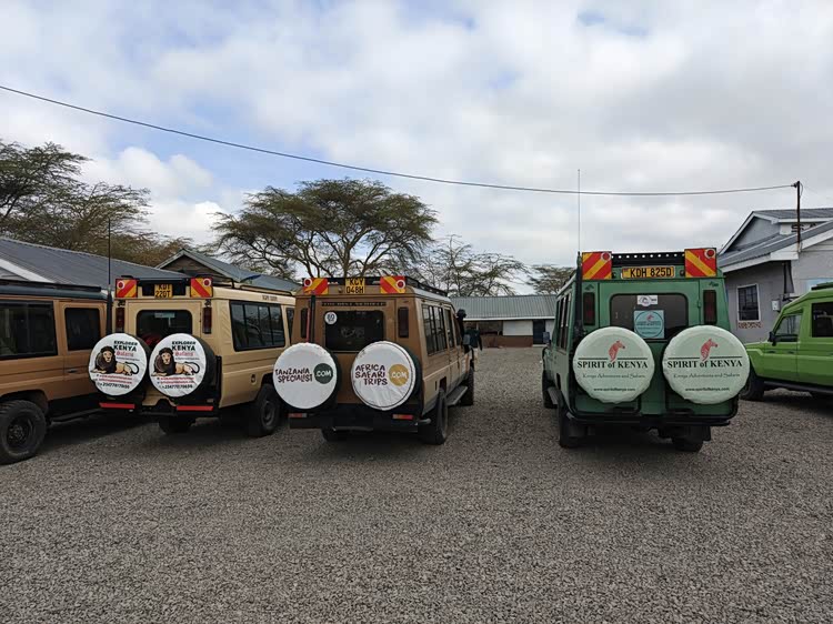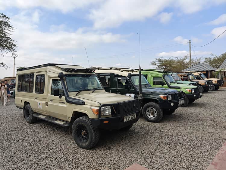 后来仔细研究这些车时发现,之前我以为是兰德酷路泽LC76或者78——因为肯尼亚丰田官网就有卖,但是后来发现不对,它们大概率是LC79系列的底盘的改装,因为这样才能安排四排座,只是前脸有76和78的样式。后来网上查了下,确实是LC79的手搓,直接用钢架焊的车身框架。司机也不太清楚具体用的是什么发动机,但我发现有些车外面贴了4.5L Turbo V8的柴油发动机(估计就是1VD-FTV),一箱油也能跑个1000km,非常适合这边的应用场景,因为Safari的时候住园区里面是加不了油的。当然也有可能这里用的是4.2L L6的1HZ发动机,毕竟大V8也不便宜。