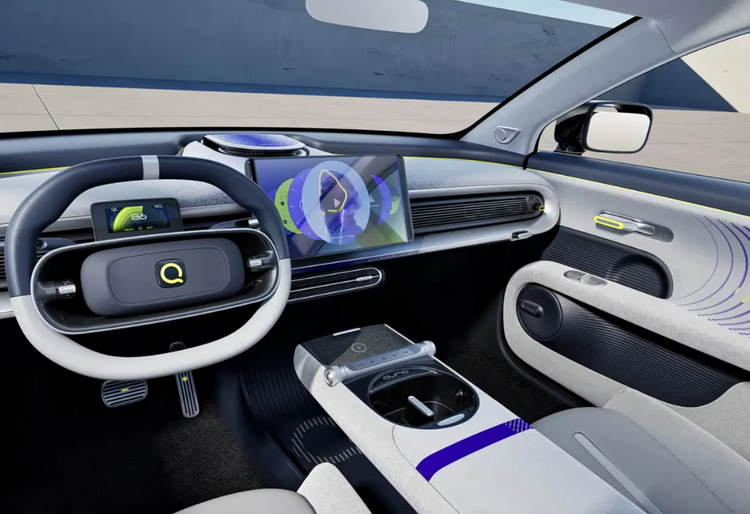 内饰暂时还停留在“概念浮夸风”:一体式大联屏从主驾铺到副驾,中控扶手前还嵌了块触控屏,方向盘做成异型——不过别担心,量产版大概率会回归实用,保留科技感的同时,让普通人也能轻松上手。
