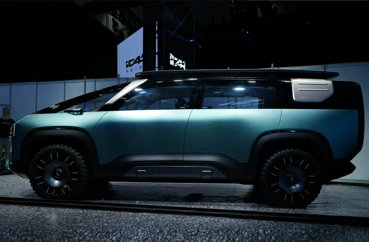 - **侧面神似理想MEGA**:溜背车顶+平直的腰线,却比MEGA更“趴”,加上低风阻轮毂和瞭望塔式激光雷达,像“贴地飞行的子弹头”;
