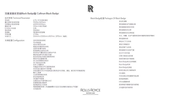 2024款 库里南 Black Badge 港口现车