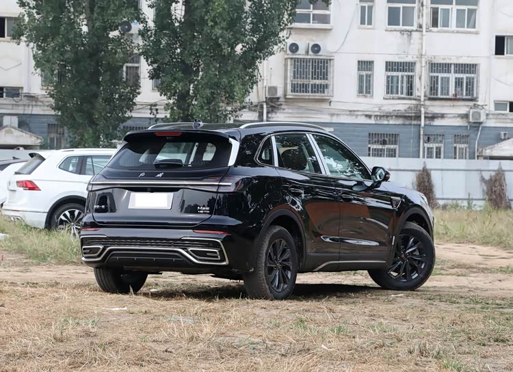 再来看新车的车身侧面部分,新车4785×1905×1700mm车身配合2870mm轴距,构成61.8%黄金轴长比。C柱15°倾斜角既保证后排头部空间,又塑造轿跑化轮廓。而双腰线设计前段凌厉后段舒缓,侧裙立体筋线强化肌肉感。玄影版采用全黑车顶+哑光灰车身的双拼配色,车窗饰条、轮眉等12处细节黑化处理。新车标配19英寸多幅轮毂,高配车型更是升级20英寸熏黑轮毂,轮胎规格为255/45 R20。轮腔内部增加聚氨酯隔音棉,降低胎噪传导。