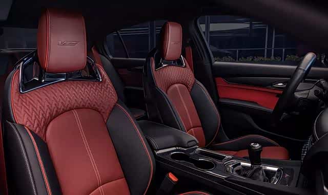 作为一款定位高于凯迪拉克CT5-V的高性能版本,新车整体的表现可以说是相当的亮眼,尤其是对比以往的普通版车型来说,新车造型更为激进。并且在轻量化方面表现更为突出,部分车身和内饰材质升级为碳纤维材质。首先在车漆方面,从常规CT5-V 黑翼的 9 款增加至 160 款,其中涵盖了高光漆和磨砂漆等多种漆面效果,带来极为强烈的视觉效果。